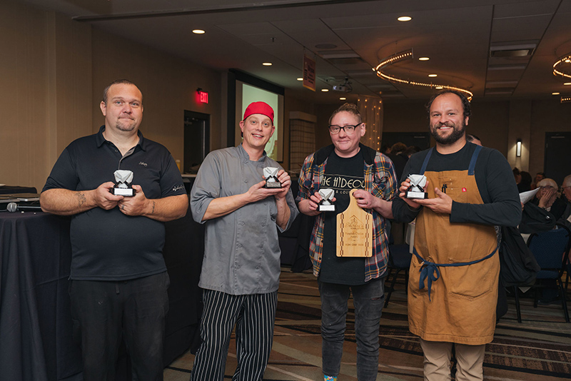 Pictured here are the chefs from the 2025 Iron Chef Competition (from left): Chef Adam Winer from The Daily Food Truck, Most Creative; Chef Bryan Rank from KamBray's Mobile Food Restaurant, Best Presentation; Chef Katie McDaniel from The Hideout, Showmanship; and Chef Rob Arendt from Vila's Farm to Table, Best Flavor. (Photo by Kaitlyn Schrock)