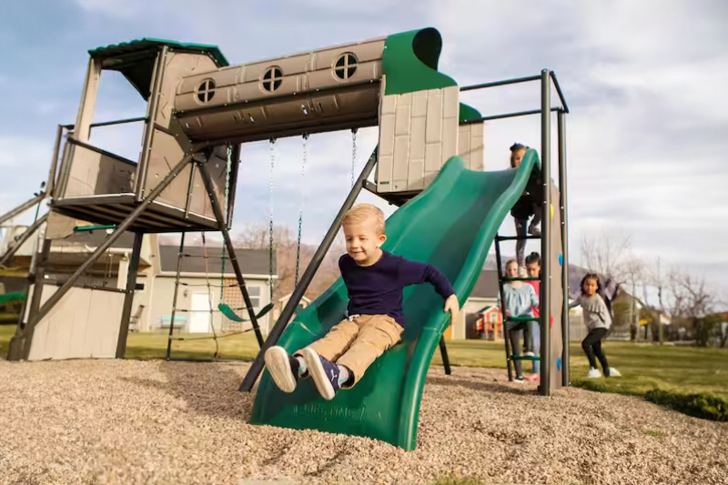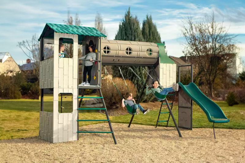 The Adventure Tunnel Playset from Hope Depot is full of activities for children ages 3 to 12 years. Constructed of UV-protected high-density polyethylene (HDPE) and powder-coated steel, it's durable, weather-resistant and will not warp, rot, crack or splinter. During Giving Tuesday we also hope to replace the wood chips – either with newer wood chips or rubber chips. There are also many accessories we can add to this playset!